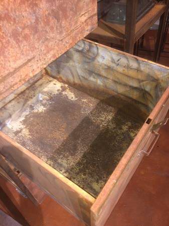 The beautiful patina'd steel grabs the eye while the cabinet also serves as a very practical and functional storage for blankets, jewelry boxes, bulk food products, etc.