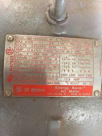NEWLY REFURBISHED5 HP 3Phase GE Motor120 GAL200 Max Working PSI400 Max Temp F.